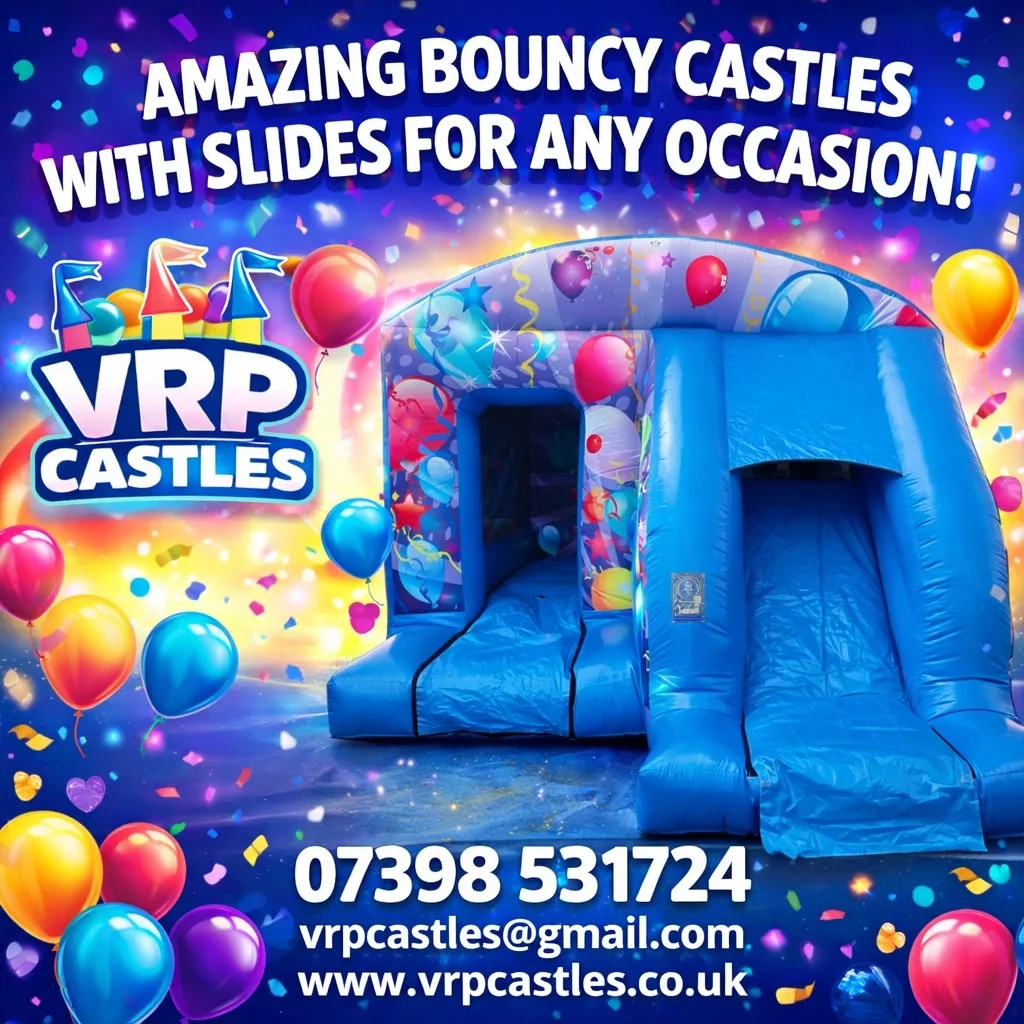 We're so excited to announce the newest addition to the VRP Castles family - our Blue Celebration Bouncy Castle with Front Slide... and it's available to book right now!
